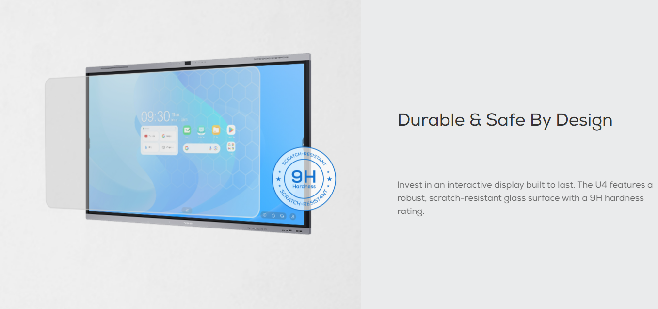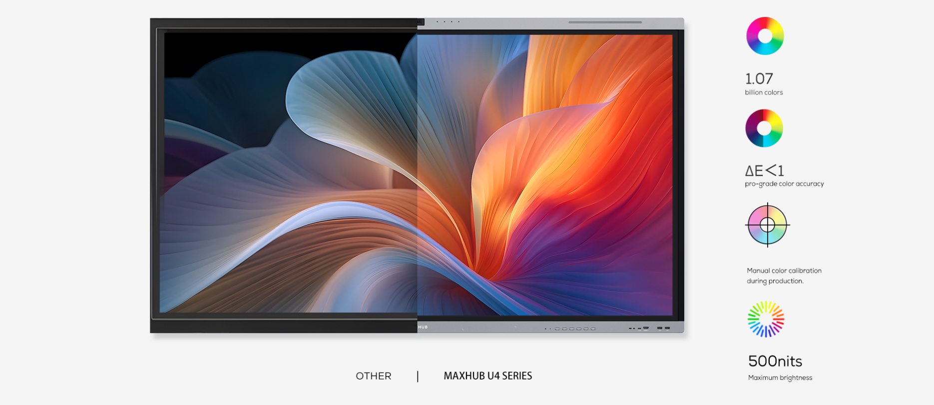 The MAXHUB U4 Series redefines visibility in bright environments with its advanced Non-Glare Screen technology, minimizing reflections for optimal clarity. With 500 nits peak brightness, it delivers vivid details and an immersive viewing experience, even in sunlit classrooms, ensuring comfort and engagement anytime, anywhere.