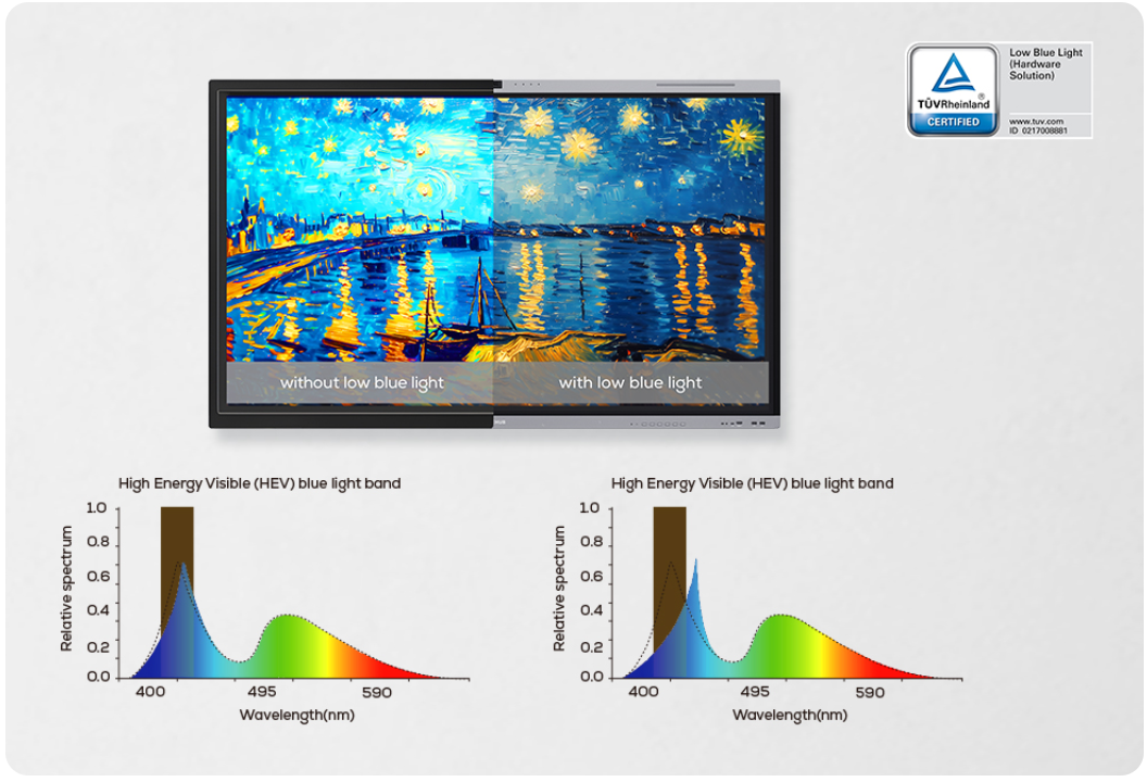 Prioritize eye health without compromising visual brilliance. Our displays feature hardware-level low blue light technology, TÜV-certified for superior eye protection. Combined with flicker-free DC dimming, you can enjoy long hours of comfortable viewing without the strain and fatigue associated with traditional screens. Learn more, see more, and protect your vision.