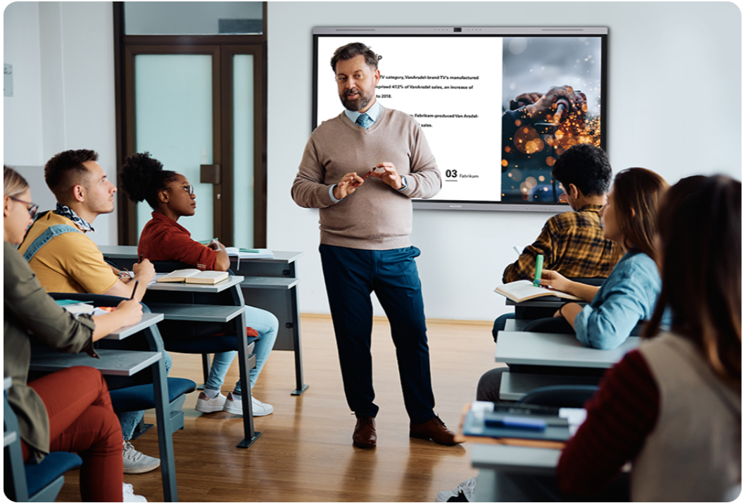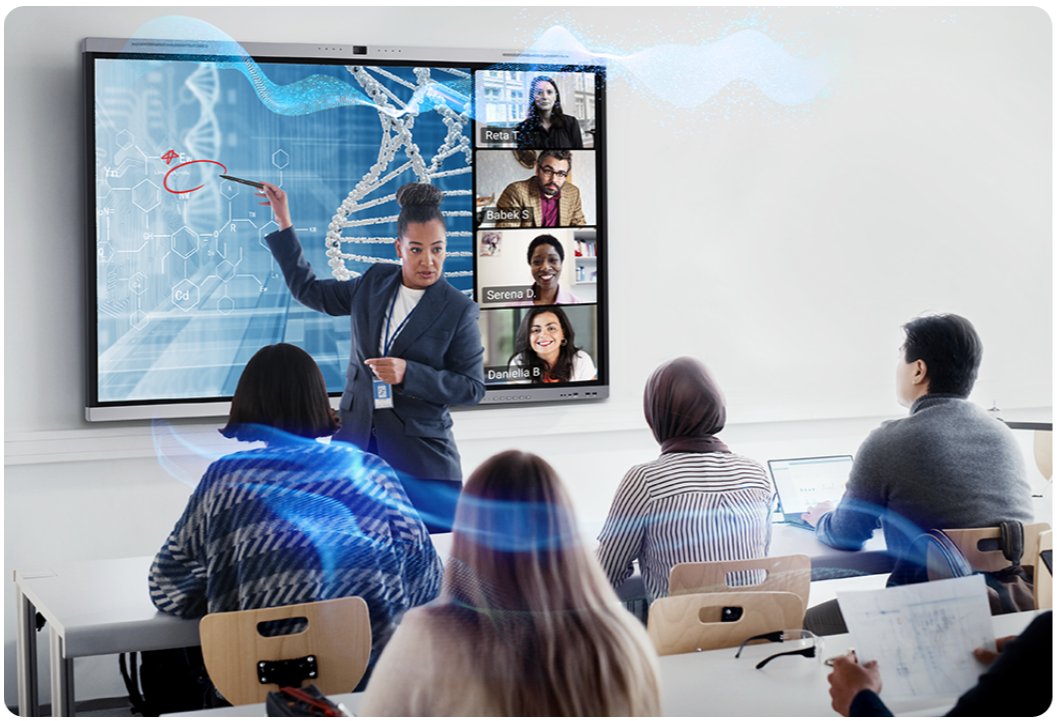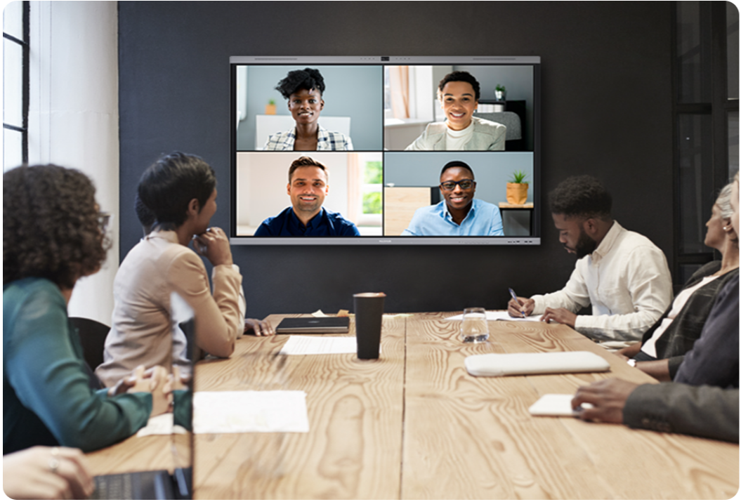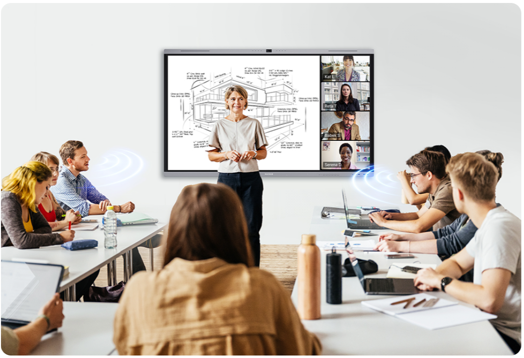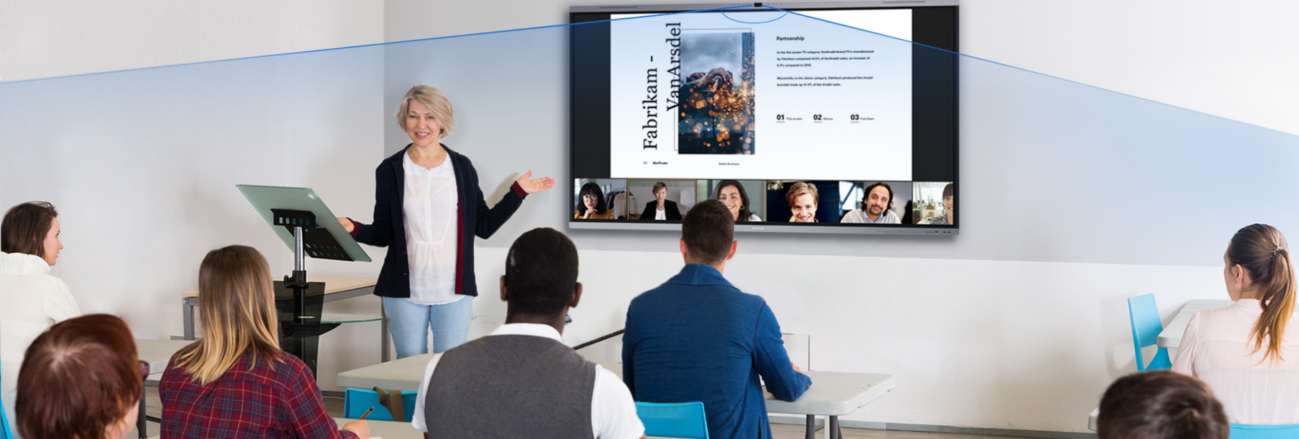 By leveraging auto-framing, the display adapts to the number of participants and their location, delivering an optimal angle for a face-to-face interaction experience.