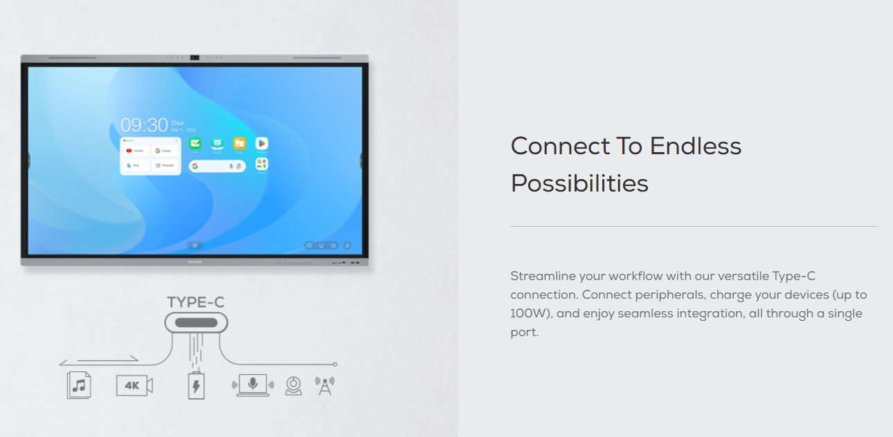 With BYOD (Bring-Your-Own-Device), you can seamlessly connect your personal device to the display using a Wireless Dongle, MAXHUB Connect software, or a USB-C cable. Leverage the display’s advanced camera, microphone, and speakers for an unparalleled collaboration experience.