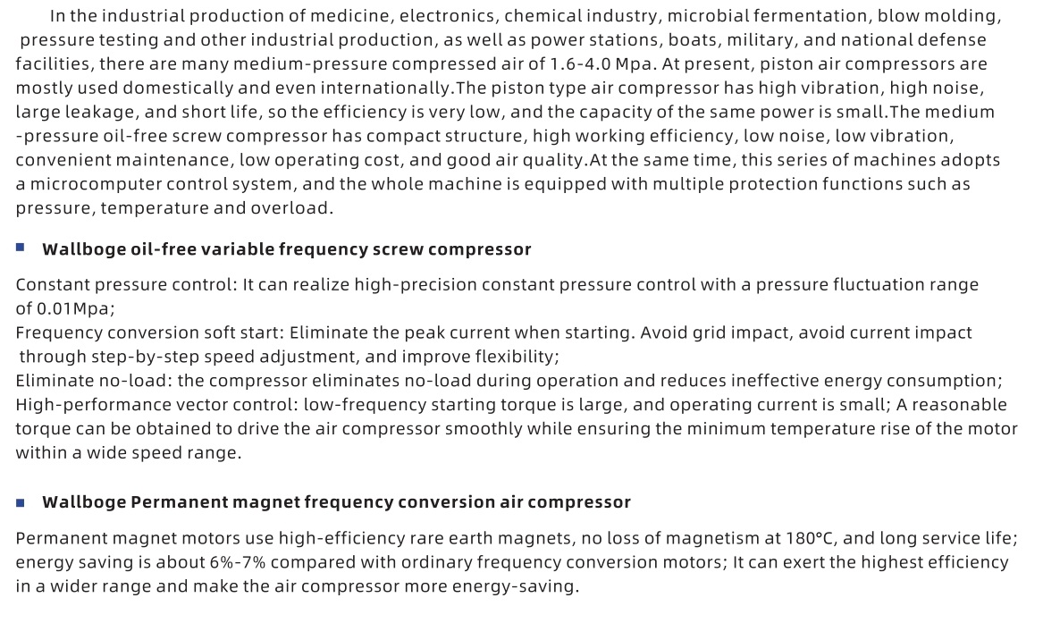 Intelligent Variable Frequency Water Lubricating Oil-free Screw Compressor