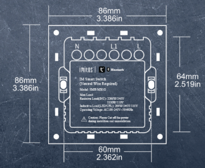 The IMITOS SMART Series SMH-WH1G is engineered for heavy-duty stability. Supporting a resistive load of up to 2200W and an inductive LED load of 200W, it handles everything from standard bulbs to modern downlights. Designed for AC100-240V, it fits standard 86mm backboxes with a 69mm cut-out size.