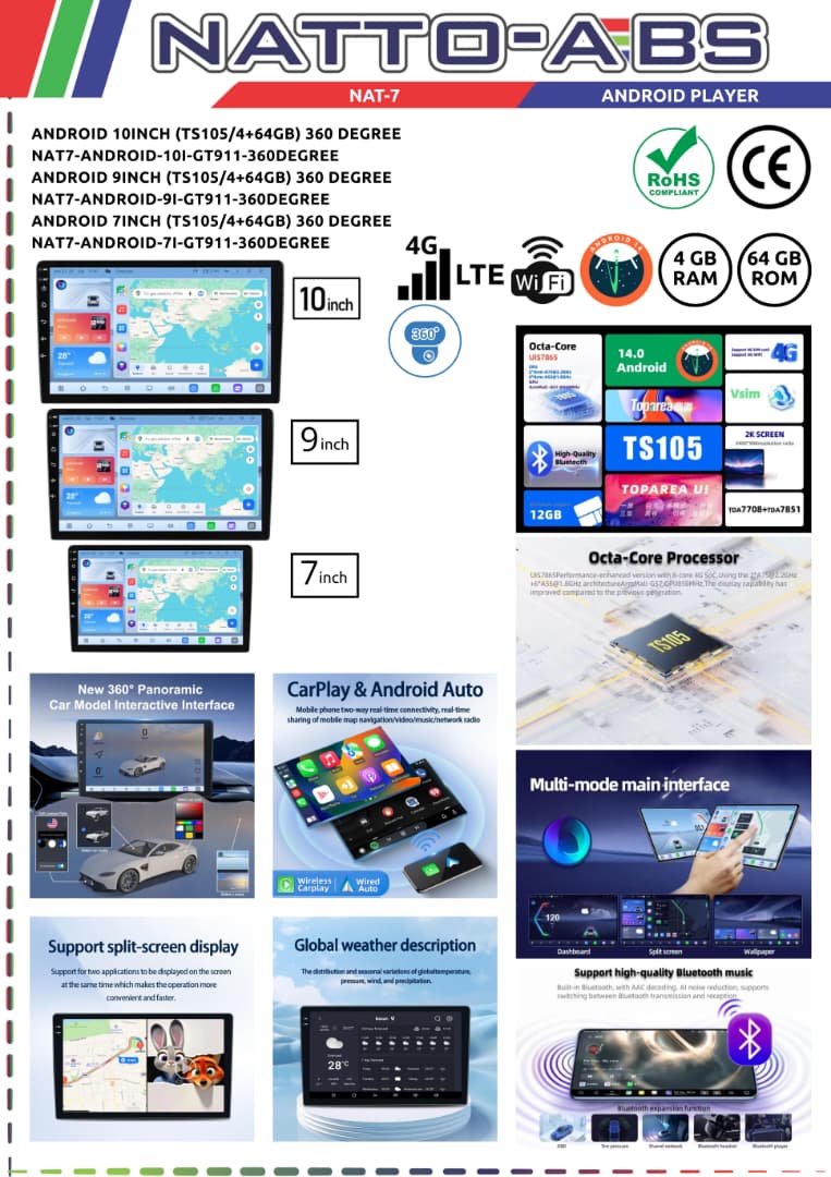 Why settle for a slow dashboard when you can have a powerhouse? Introducing the new NATTO ABS Android Player. Powered by a lightning-fast Octa-Core Processor and running on the latest Android 14, this is smoother than your phone!