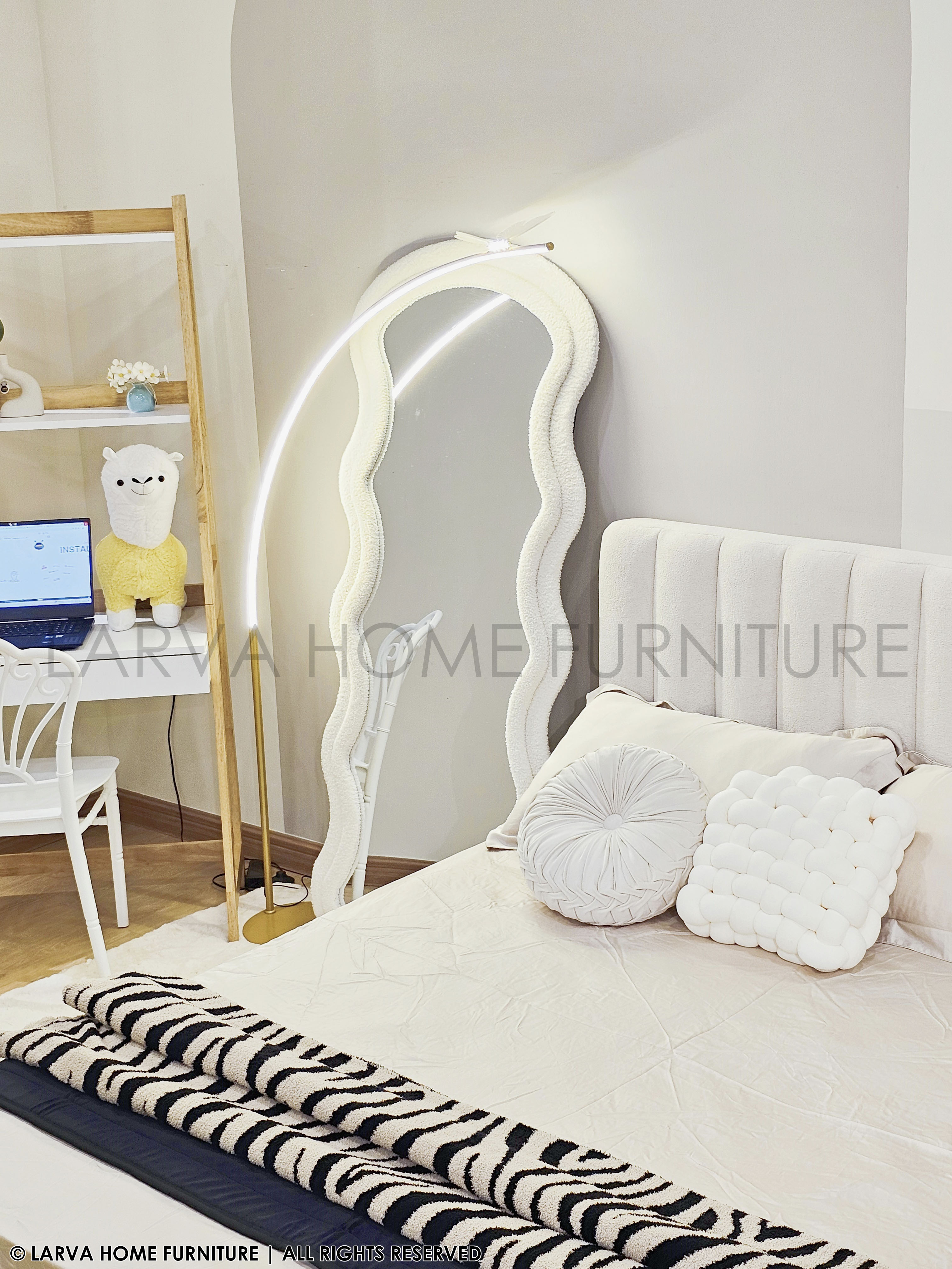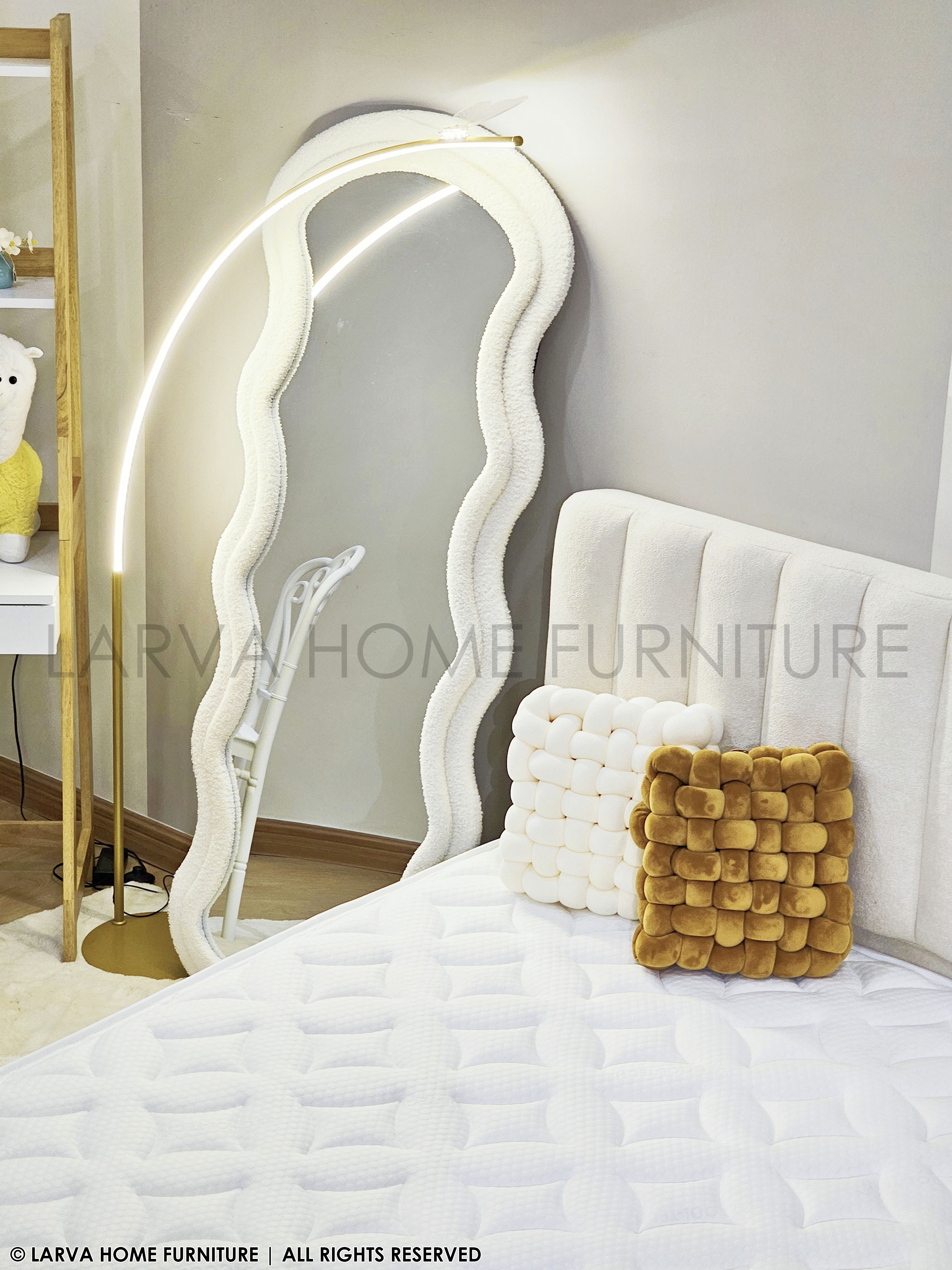 This statement Cloufy Mirror features a sculptural frame that adds artistic character to any room. The fluid silhouette introduces softness to modern interiors. Its full-length design enhances both functionality and visual depth. High-quality reflective glass ensures clarity and durability. Ideal for bedrooms, dressing areas, or entryways. A decorative piece that elevates everyday spaces.