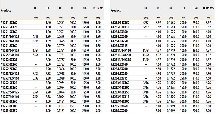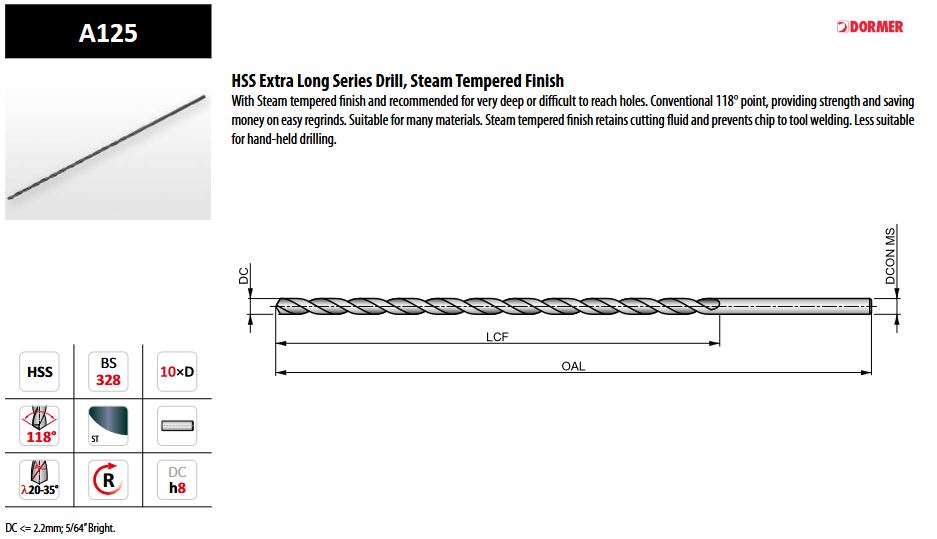 A125 Extra Long Series Drill