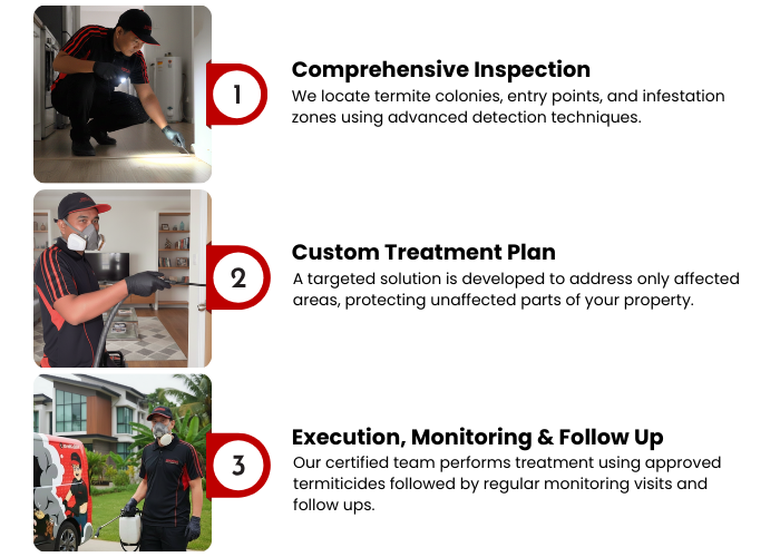 By implementing this system, Sincerae Services (M) Sdn Bhd ensures complete termite control and ongoing property safety while adhering to strict safety and environmental standards.