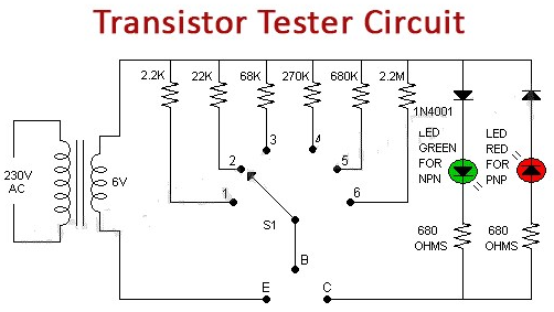 PNP Transistor Symbol and Structure; Transistor Tester Circuit Diagram