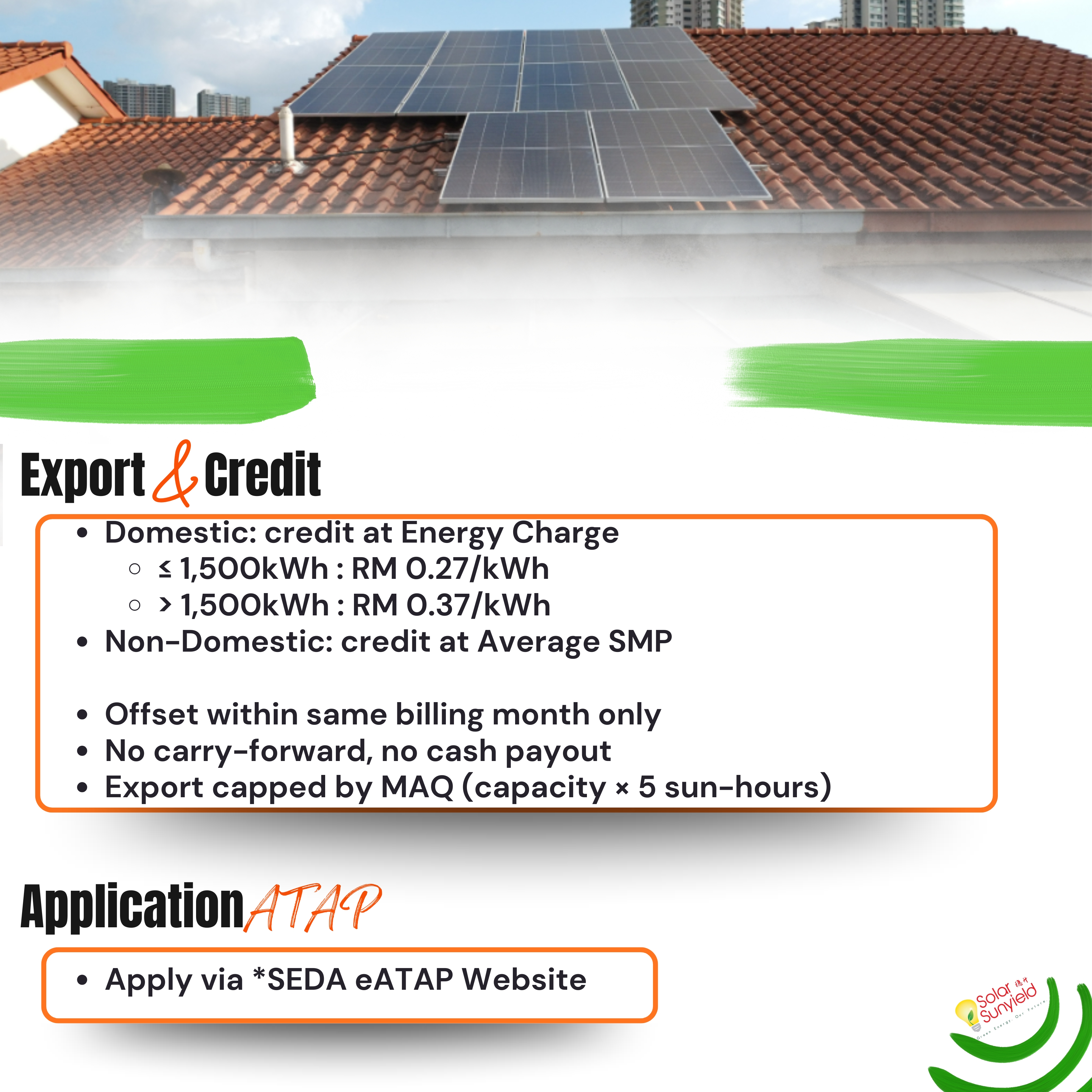Solar ATAP is designed to encourage more Malaysians to adopt solar while maintaining grid stability. It’s best suited for those who can consume most of the solar energy they generate and want to offset their bills with controlled export.