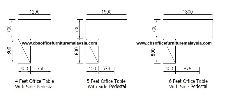 GENERAL OFFICE TABLE WITH SIDE CABINET SIZE