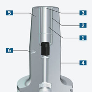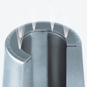 The most important features: 1. High runout accuracy (< 0.003 mm) 2. Extreme clamping torque by high pressing in the clamping bore 3. Short chamfer 4. Dynamic form: Reinforced shank at long tool holders. Compromise between slimness (marginal interference contour) and rigidity 5. Cool Jet (on request) 6. Threaded bores for simple and fast balancing with screws |