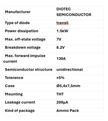 DC - 1.5KE8.2A 1500W 8.2V DIODE