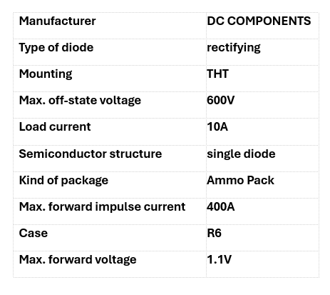 DC - 10A6-BP 10A/600V R-6 DIODE RECTIFIER