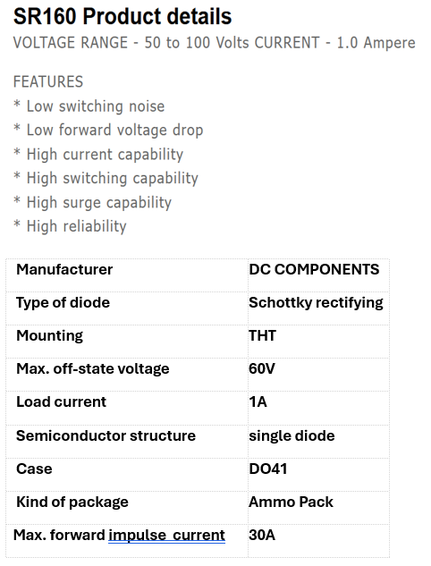 DC - SR160 1A 60V DO41 SCHOTTKY DIODE