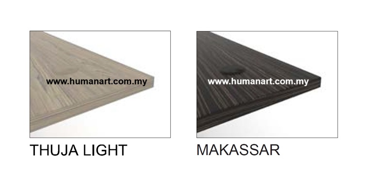 | MODEL : FIN 21 | DIRECTOR TABLE WITH SIDE CABINET | COLOR : MAKASSAR / THUJA LIGHT | SIZE : | 2100W x 2100D x 750H mm |