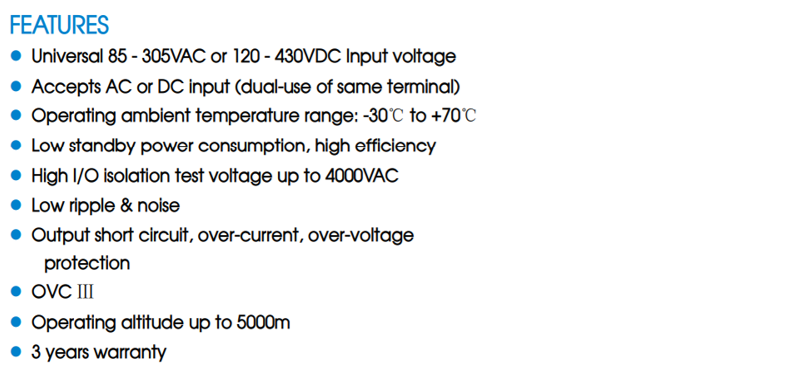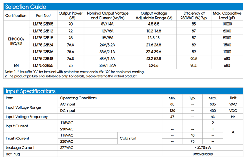 MORNSUN LM75-23B05 SERIES AC/DC 75W ENCLOSED SWITCHING POWER SUPPLY