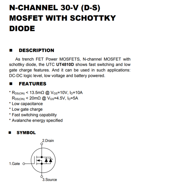UTC UT4810D MOSFET WITH SCHOTTKY DIODE