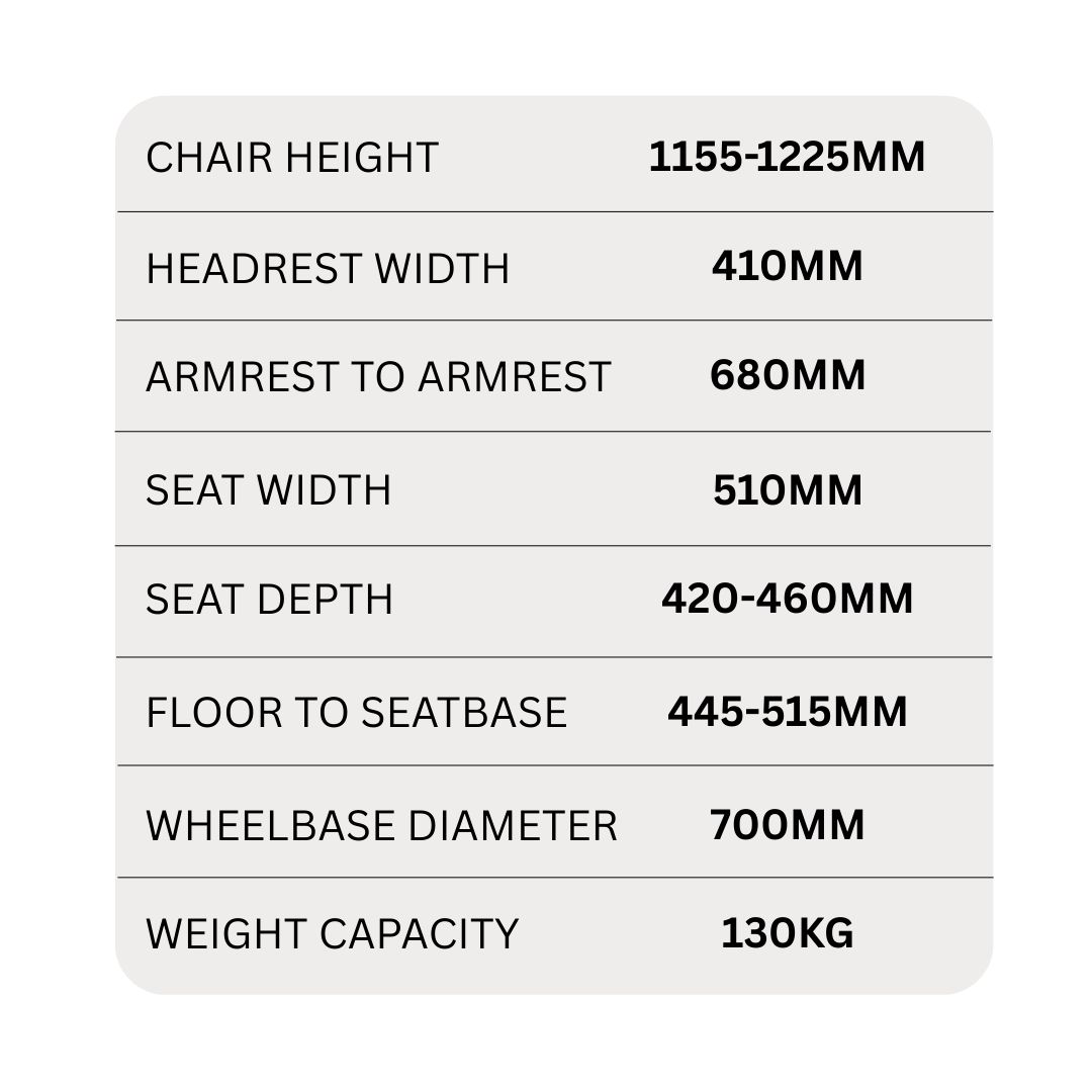 Overall Chair Dimensions: 680W x 600D x 1155-1225H (mm)