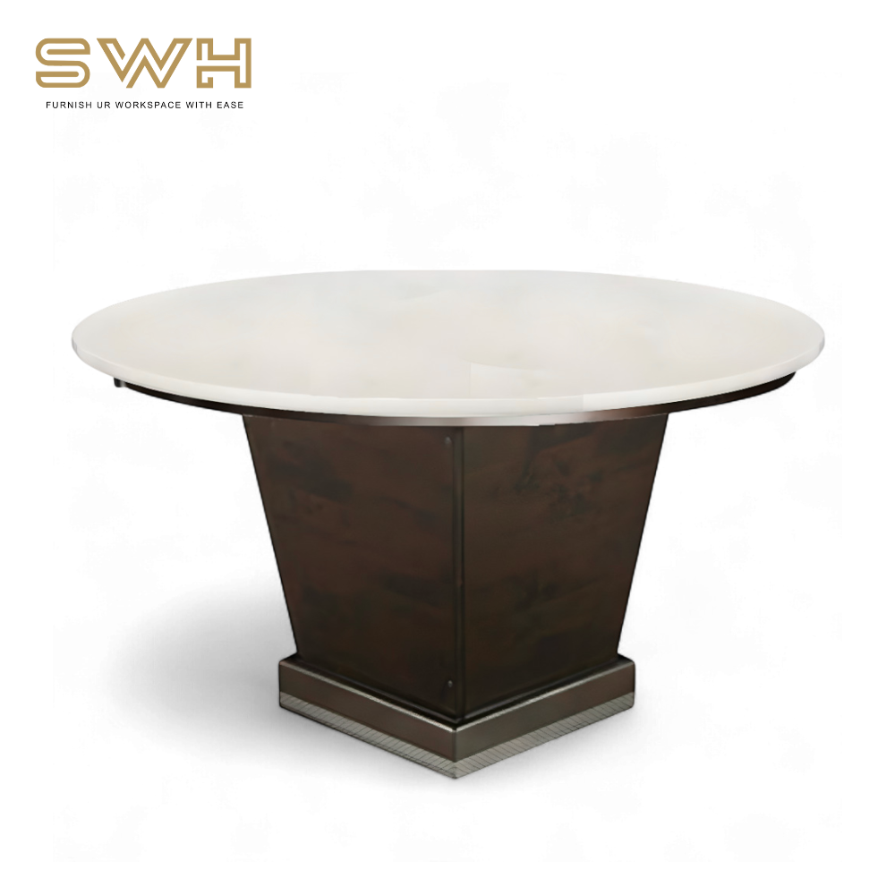 Round Natural Marble Dining Table (5ft) | Natural Marble + Solid Wood Dining Table