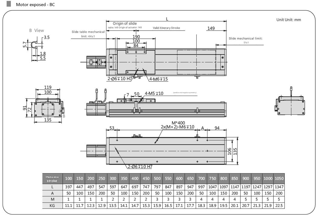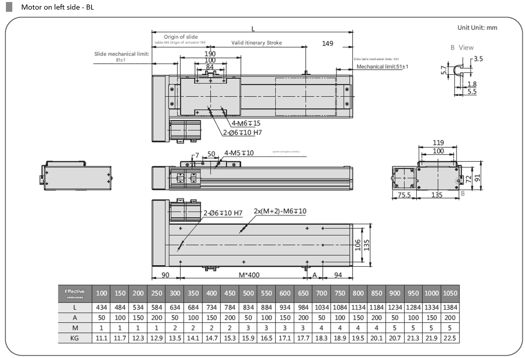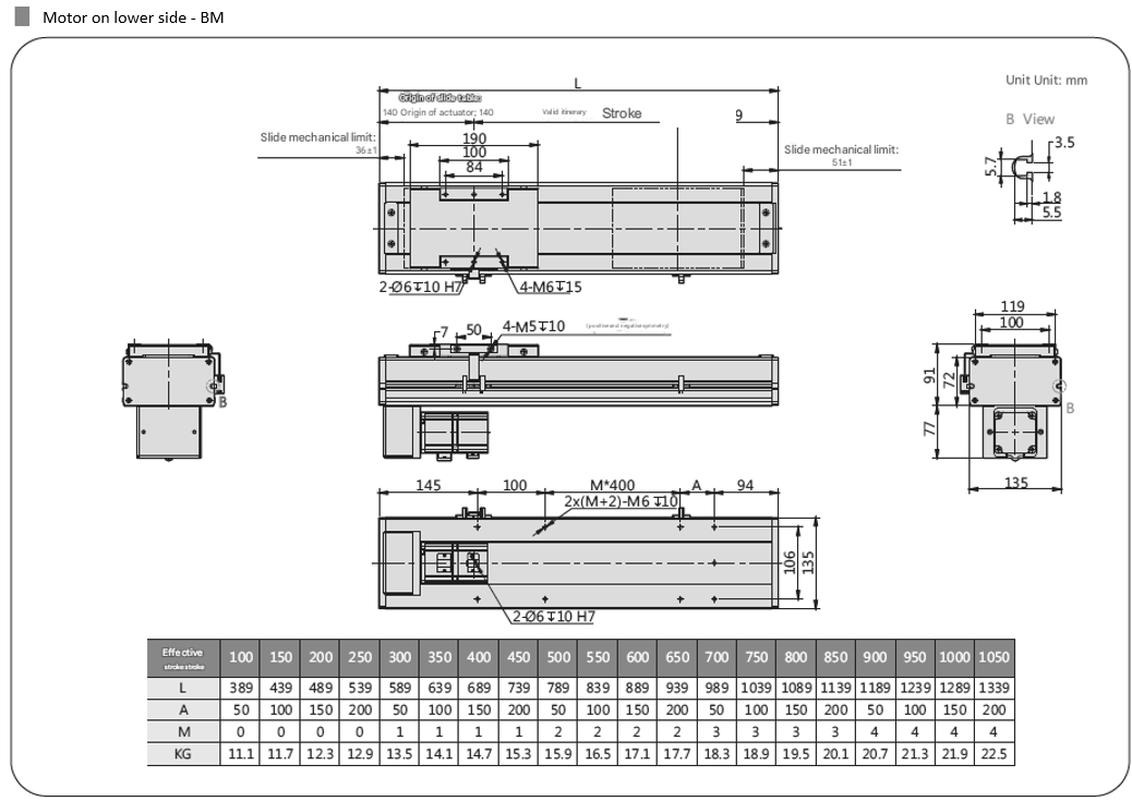 | Standard Stroke/Pitch (mm) | 100-1050mm/50 interval 50mm pitch | |||||