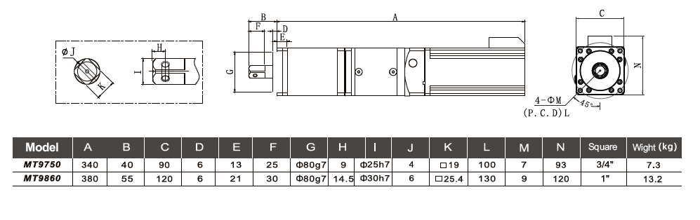 Motor Power Model Adapted controller Tool cable Torque outputrange (N.m) Max. Speed (rpm)