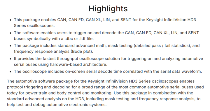 KEYSIGHT HD300AUTA Automotive Analysis Software Package for HD3