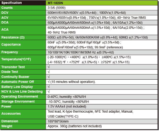 PRO'SKIT MT-1820N DIGITAL MULTIMETER W/USB CONNECTOR