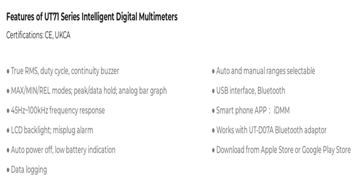 UNI-T UT71 Series Intelligent Digital Multimeters