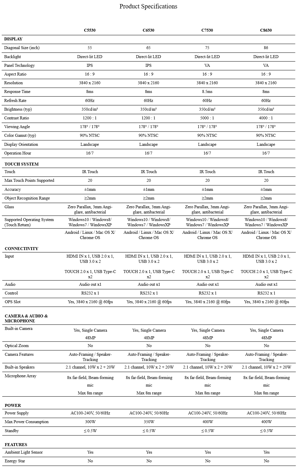 Drive productive teamwork and increase organizational efficiency with this meeting room must-have. Integrating professional video conferencing, seamless screen sharing, advanced whiteboard technology, and a brilliant audiovisual experience, the MAXHUB V6 Classic Series is the ultimate corporate-collaboration assistant.