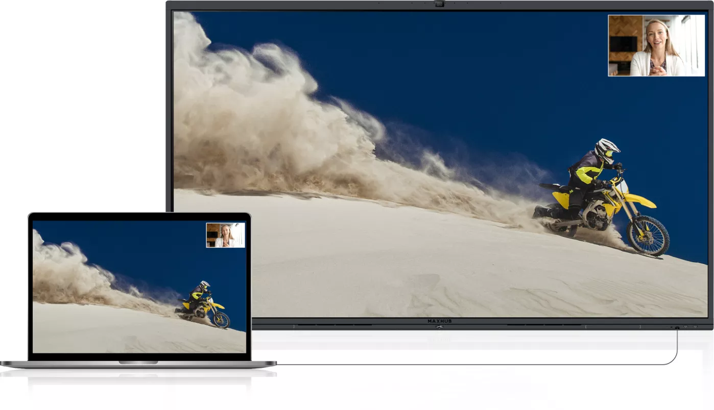 No more back and forth from your seat during presentations – project content via your laptop directly to the display and operate your laptop using the touchscreen display.
