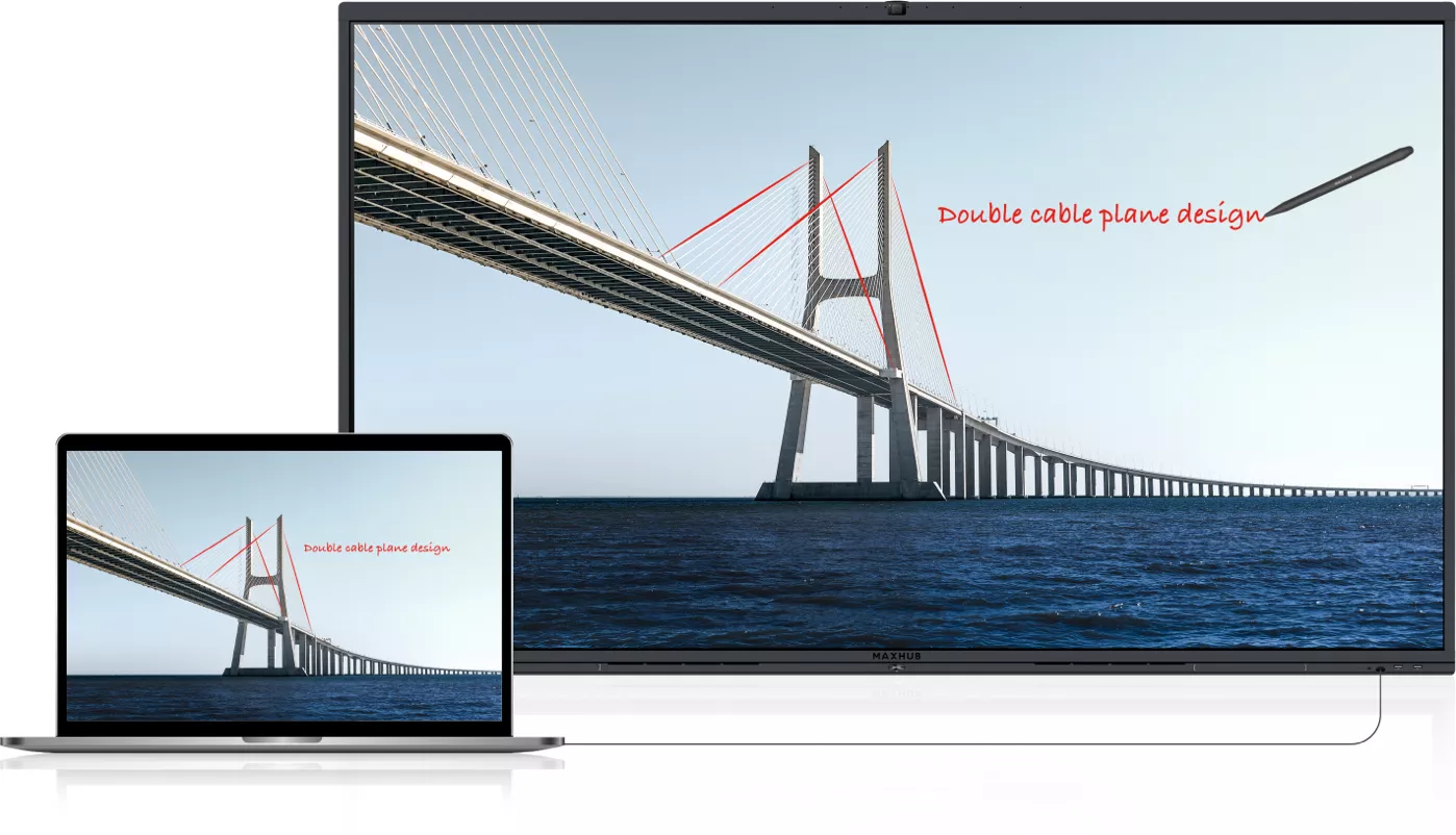 The V6 Classic Series' front-facing Type-C interface design allows you to cast from, and control, your own devices through the touchscreen. You can also use its camera, microphone, and speakers directly from your laptop. Wired screen-sharing requires just one Type-C cable – it's that easy.