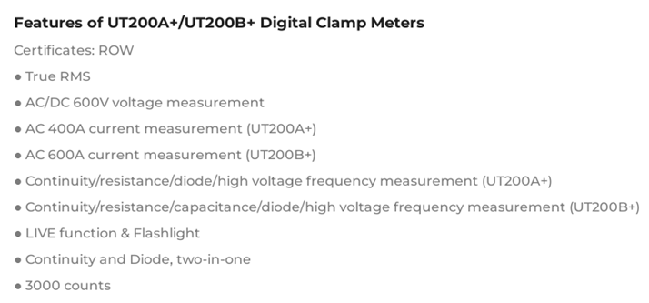 UNI-T UT200A+/UT200B+ Digital Clamp Meters