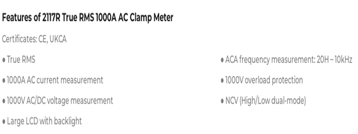 UNI-T 2117R True RMS 1000A AC Clamp Meter