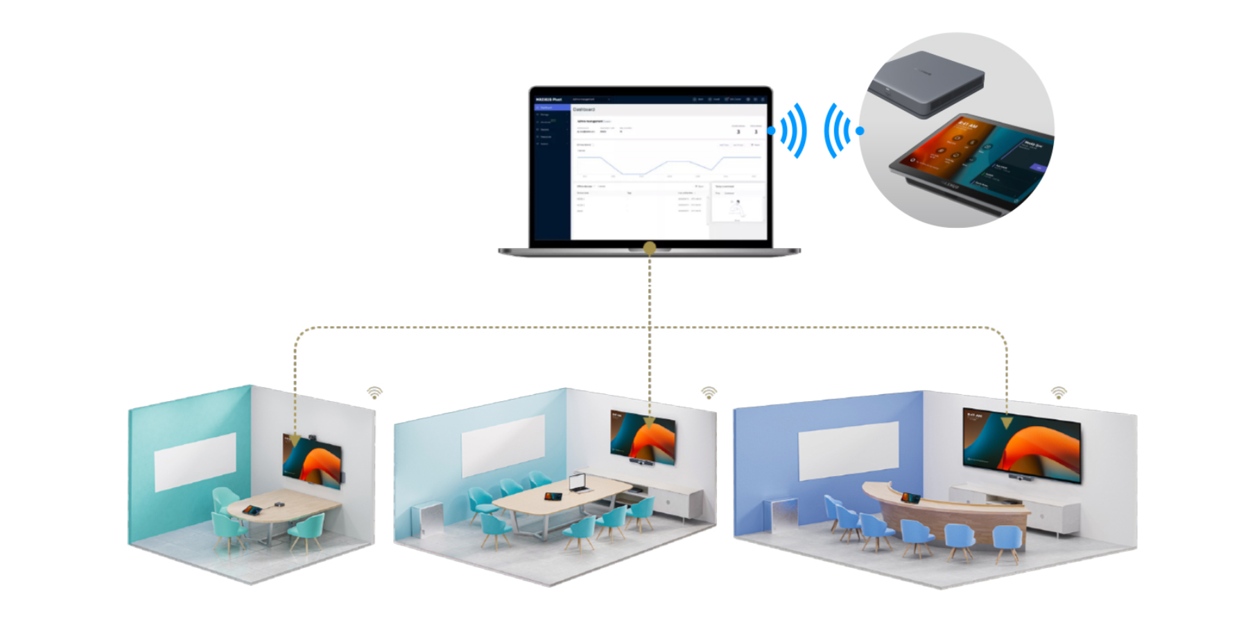With MAXHUB Pivot. IT managers can easily monitor, control, and update all your room devices remotely.