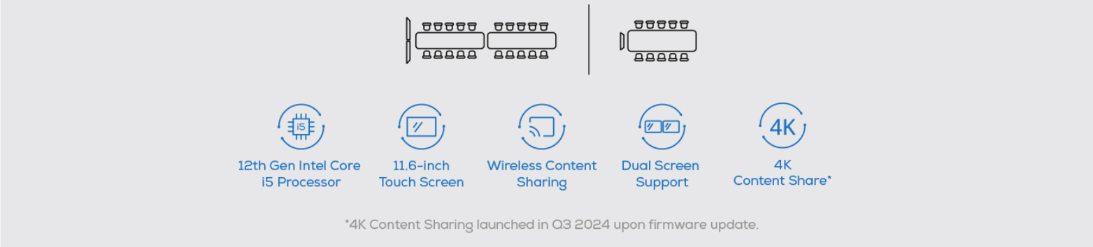 MAXHUB XCore Kit Pro is a Microsoft Teams Rooms conferencing solution designed for medium to large meeting rooms. It includes a touch-screen (11.6-inch) control panel and a mini-PC (12th gen Intel Core i5 processor) running Microsoft Teams Rooms for seamless collaboration. With wireless content sharing and dual-screen display capabilities, it offers a comprehensive and user friendly conferencing experience.