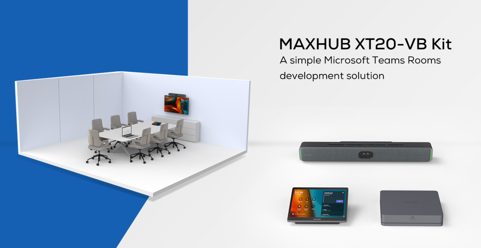 The MAXHUB XT20-VB Kit integrates the XCore Kit Pro and XBar U50 to deliver a complete Microsoft Teams Rooms solution for small to medium meeting spaces.