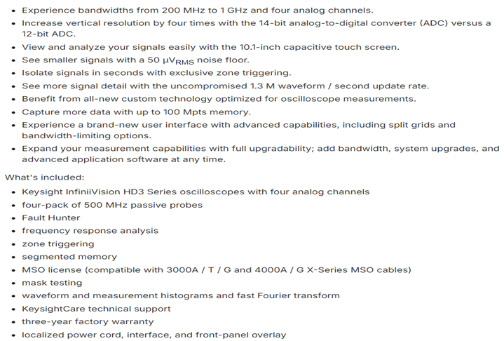 KEYSIGHT HD304MSO InfiniiVision Oscilloscope: 4 Analog Channels