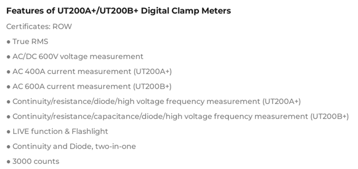 UNI-T UT200A+/UT200B+ Digital Clamp Meters