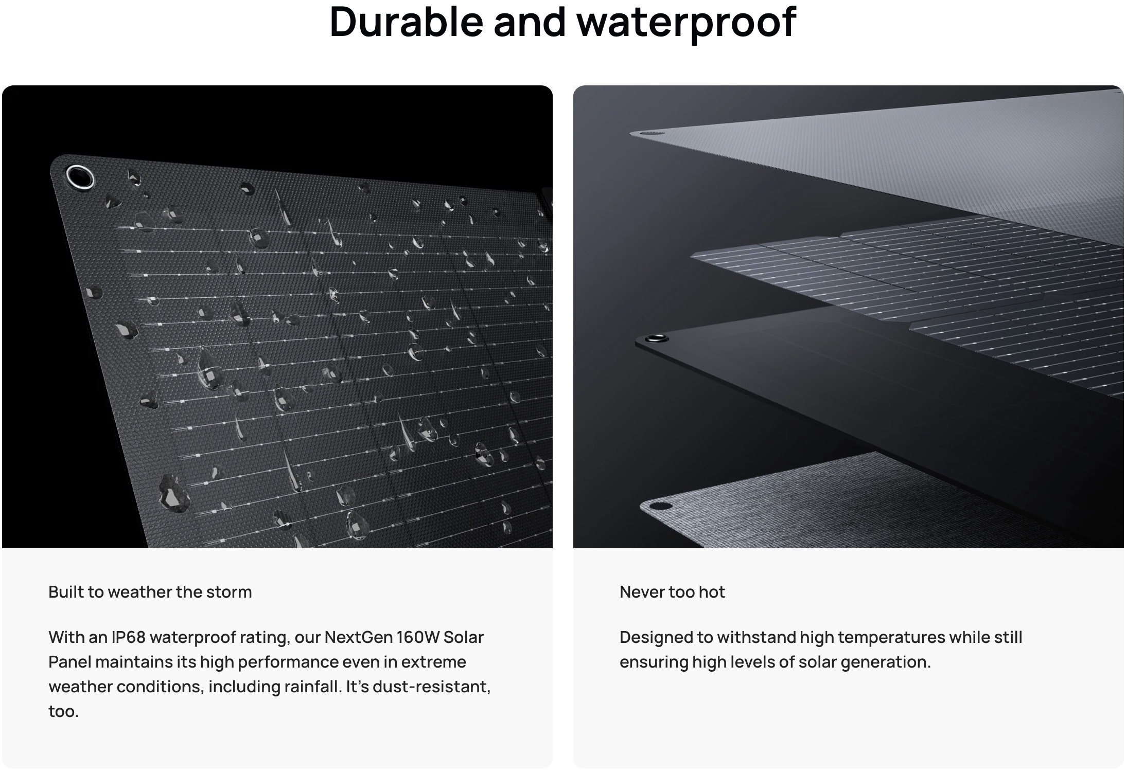 Generate solar energy anywhere with our compact-designed panels. Fold away to store in your van or closet, pull them out in seconds to start using.