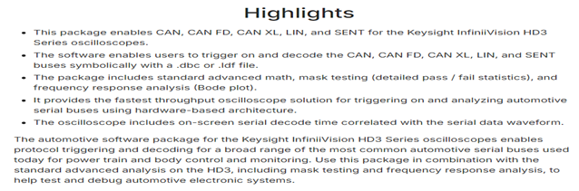 KEYSIGHT HD300AUTA Automotive Analysis Software Package for HD3