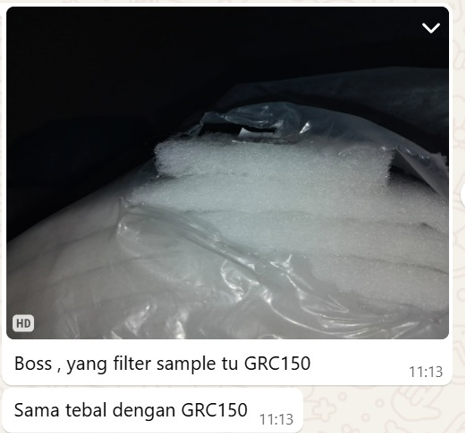 GRC-380 92% (G4/EU4) (2M[W] X 20M[L] X 25MM[T]) WASHABLE PRE FILTER (WHITE) = RM760.00 PER ROLL (26-3-2024) * Need to order!