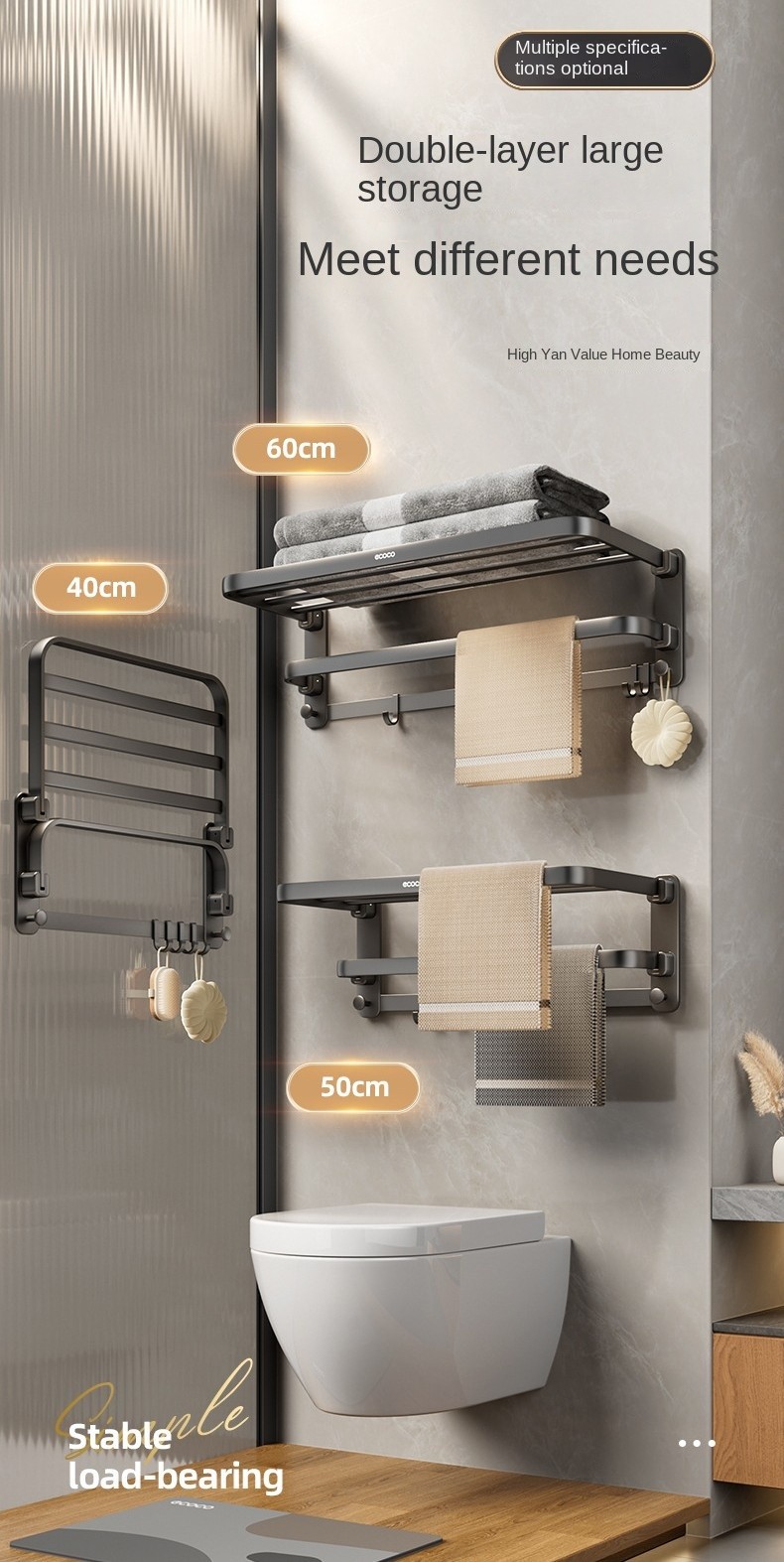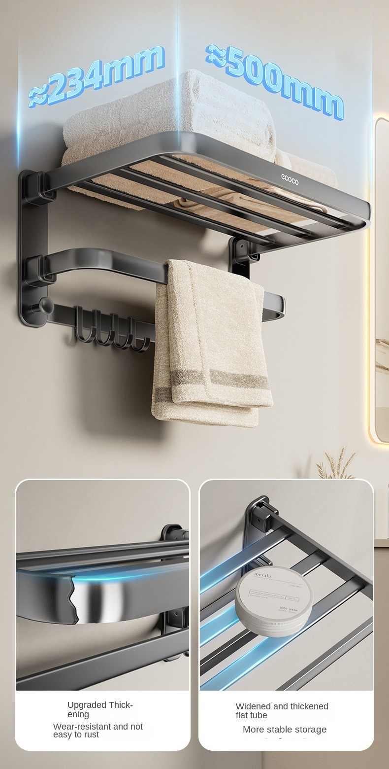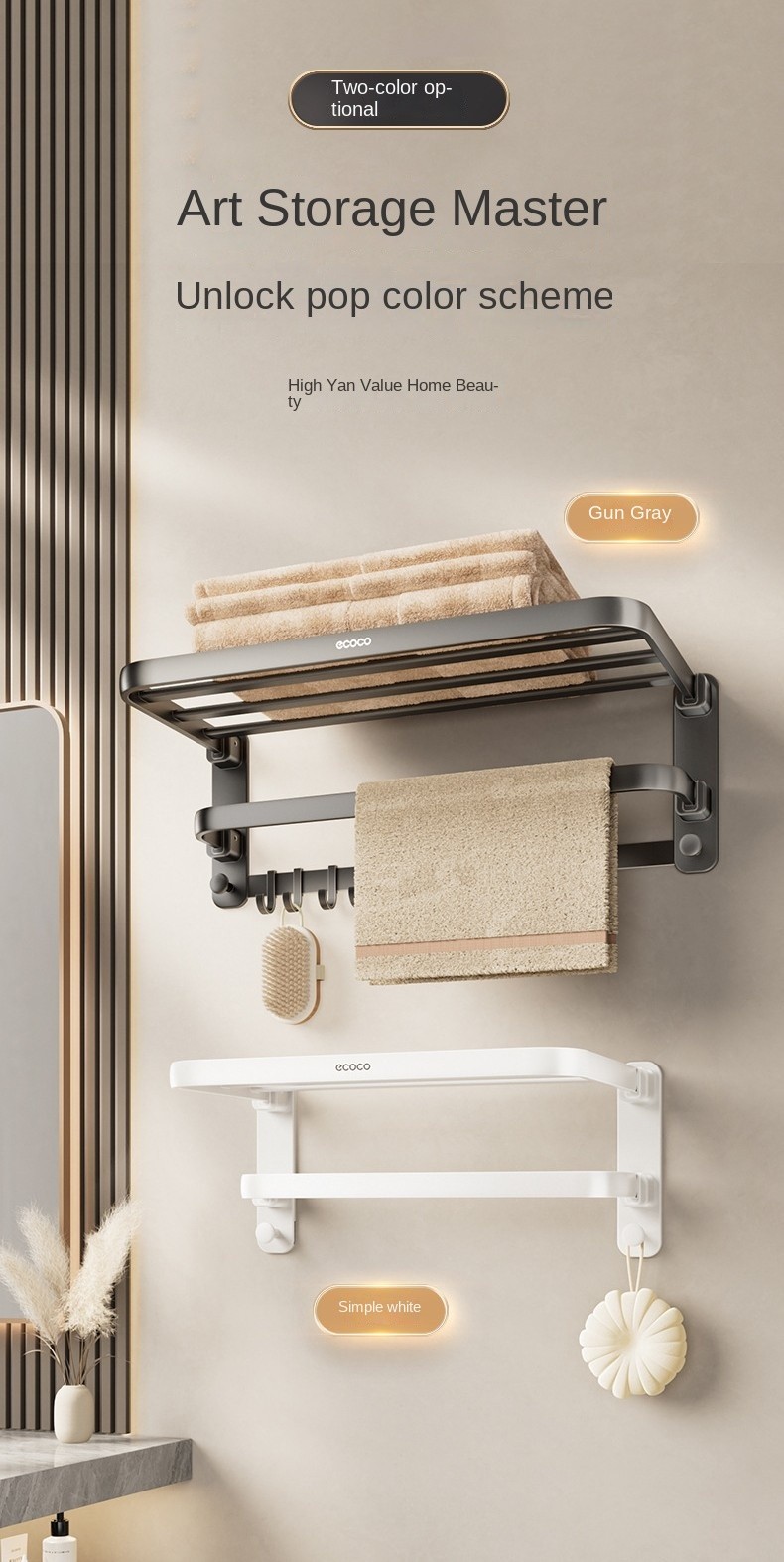 Introducing the ECOCO Luxury Bathroom Towel Rack and Shelf - the perfect storage solution for your washroom! This elegant and functional wall-mounted hanging pole organizer is designed to add a touch of luxury to your bathroom while providing ample space for towels, toiletries, and other essentials.