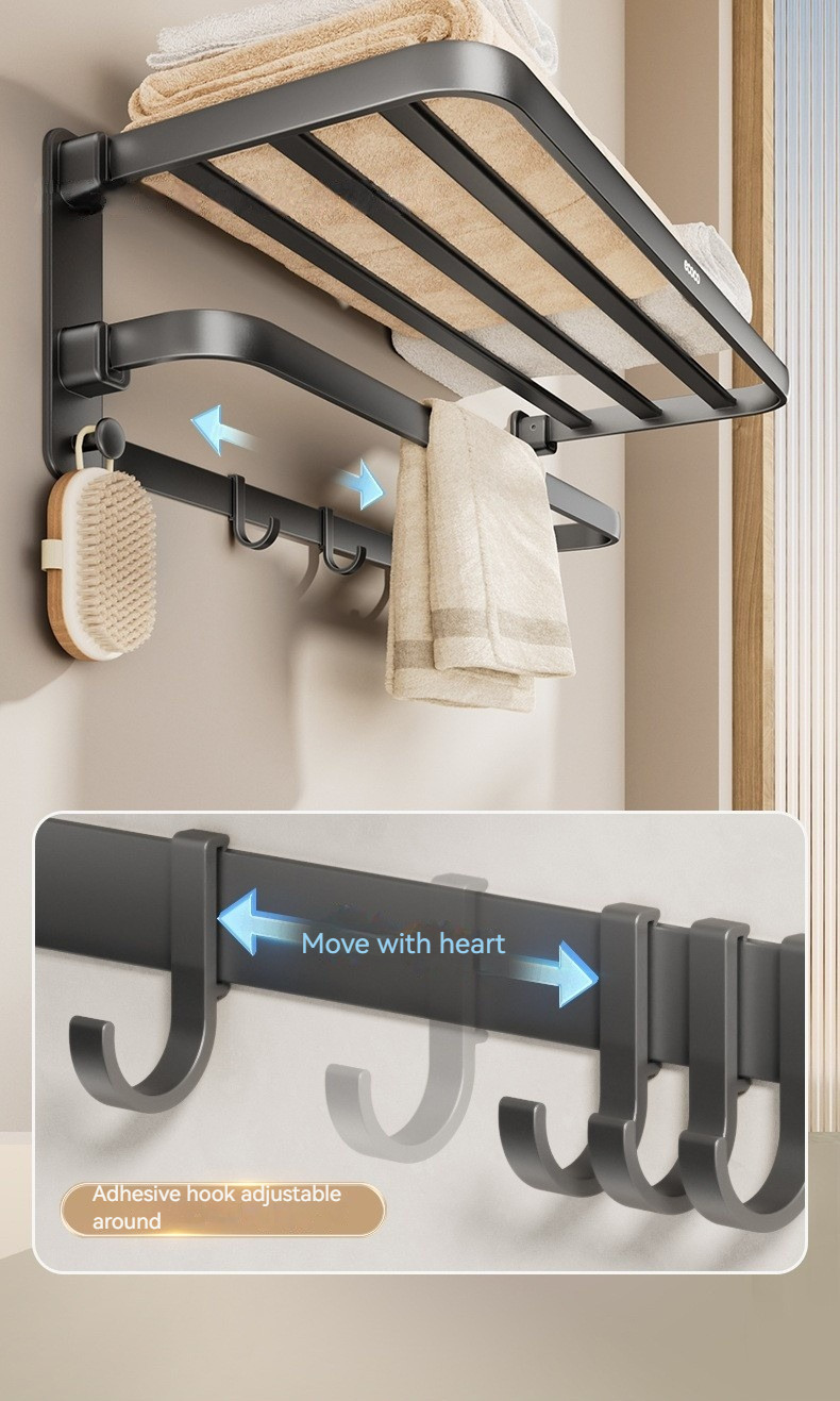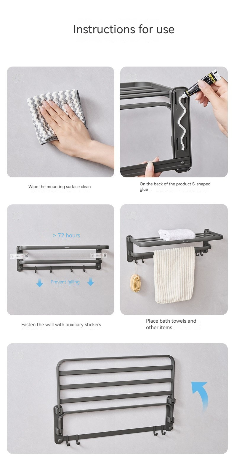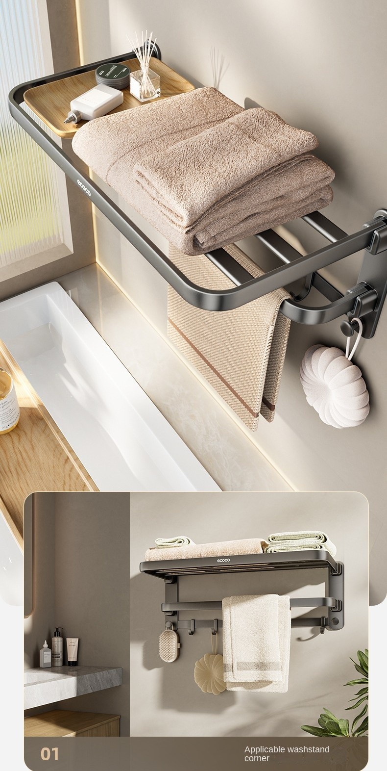 Introducing the ECOCO Luxury Bathroom Towel Rack and Shelf - the perfect storage solution for your washroom! This elegant and functional wall-mounted hanging pole organizer is designed to add a touch of luxury to your bathroom while providing ample space for towels, toiletries, and other essentials.
