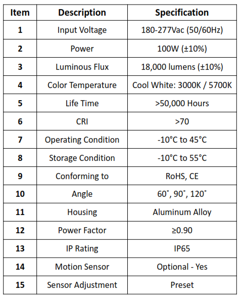 Model : NTPC-GHBC-100W