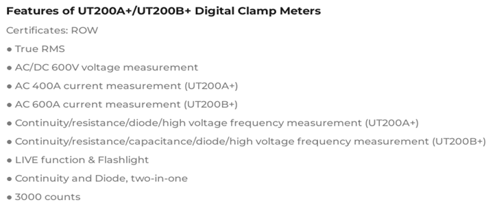 UNI-T UT200A+/200B+Digital Clamp Meters
