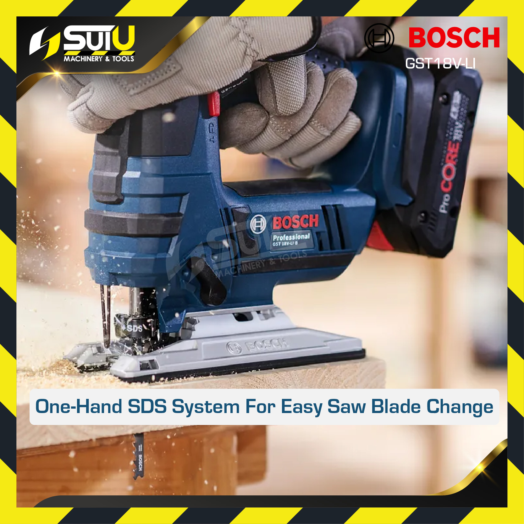 - One-hand SDS system for easy saw blade change