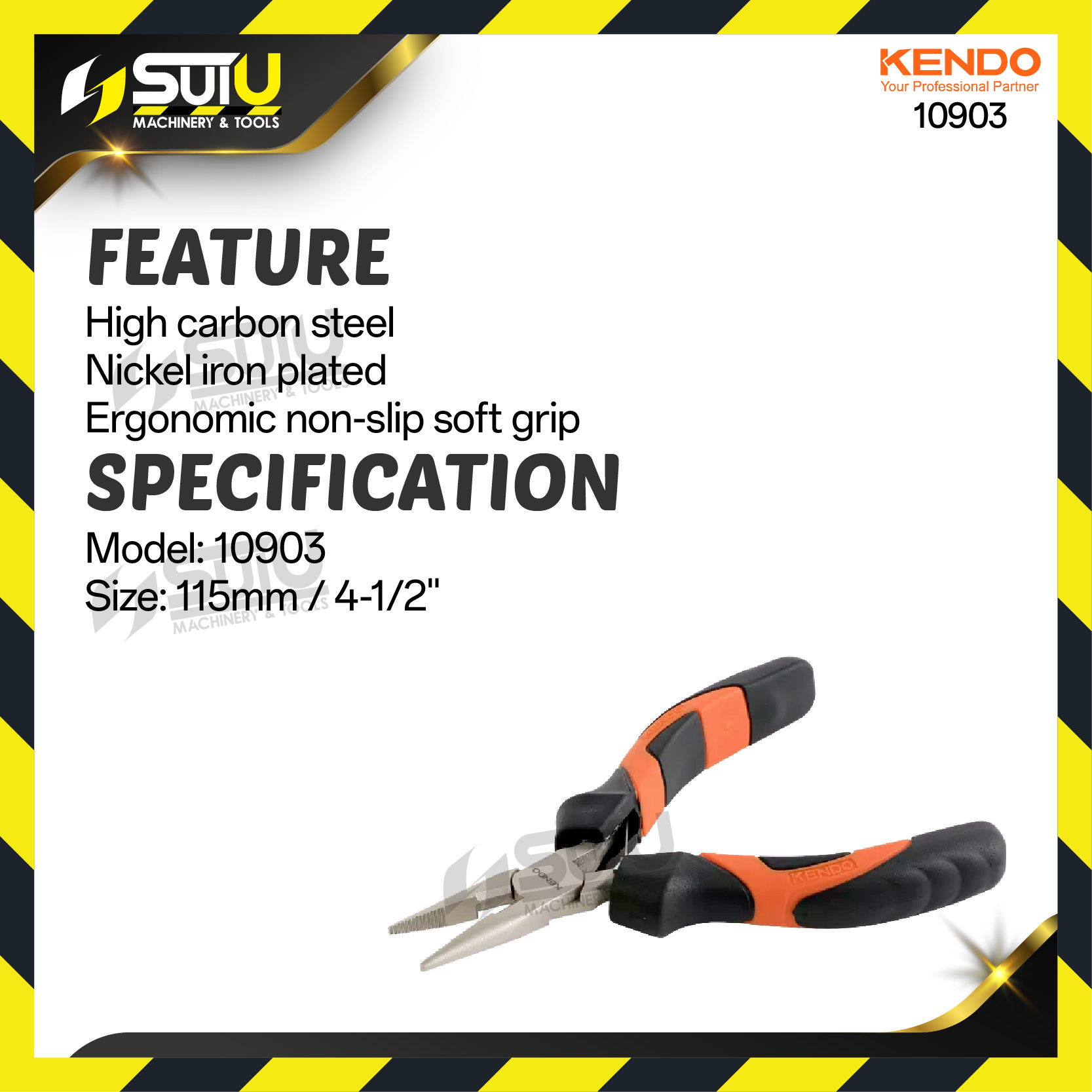 KENDO 10903 115MM / 4-1/2'' Long Nose Mini Plier