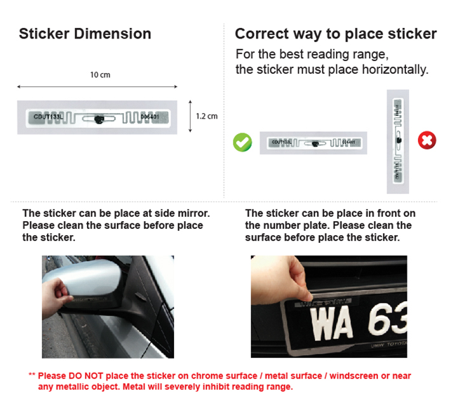 CDUT133L UHF (Anti clone) sticker can place at car number plate or side mirror.