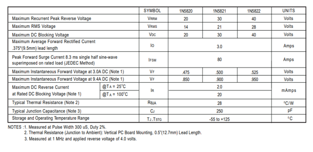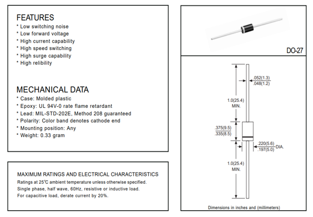 DC - 1N5820 3A 20V DO-27 SCHOTTKY DIODE