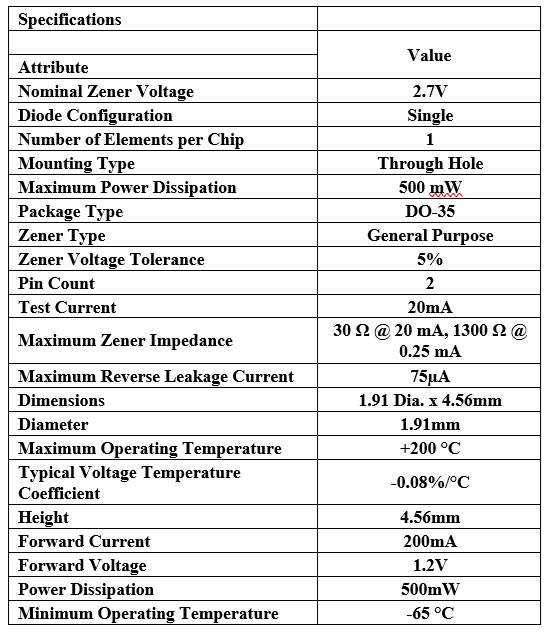 DC - 1N5223B 2V7/0.5W ZENER DIODE