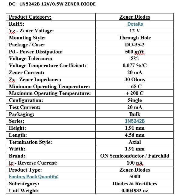 DC - 1N5242B 12V/0.5W ZENER DIODE